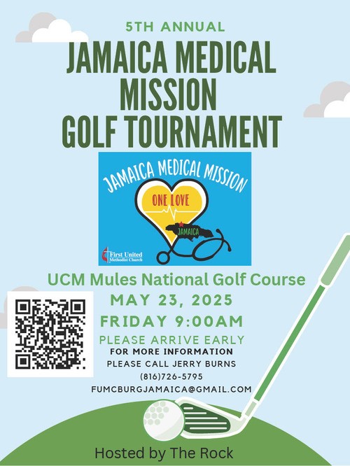 Come join us for a fun filled day of golf to support our medical mission to Jamaica. Sign up as a 4-person scramble team or let us find you a group! The $60 Registration Fee reserves your place in the tournament. Green fees/cart rental ($50) will be paid upon arrival at the Pro Shop.